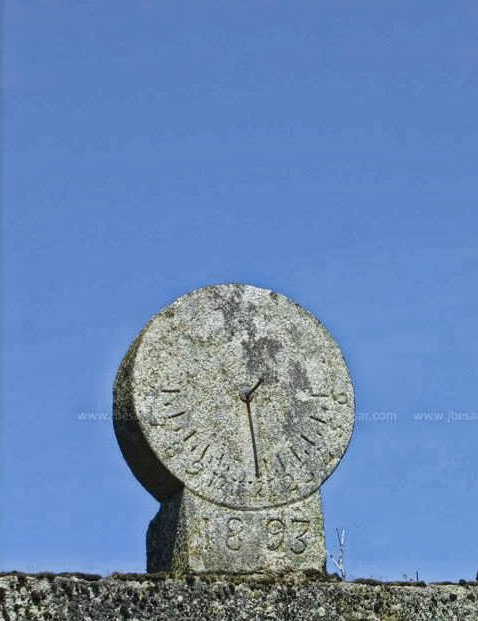 Junto ao Santuário de Nossa Senhora da Saúde em S. Pedro de Agustém, relógio de Sol sobre coluna, em granito.
